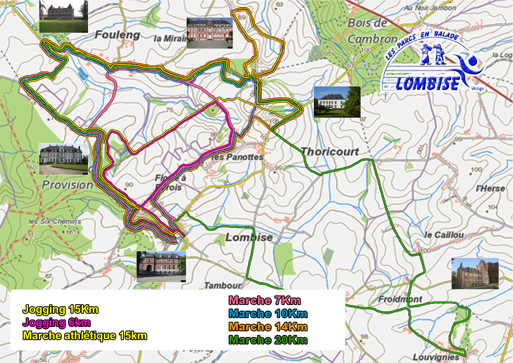 Parcours agréablement vallonné, autour de villages authentiques, sur des sentiers forestiers dans et autour des propriétés des parcs des châteaux de Lombise, Morval, Fouleng, Thoricourt et de fermes.